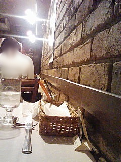 壁のレンガ細工がいい感じで、あいたワインをならべているのもよい